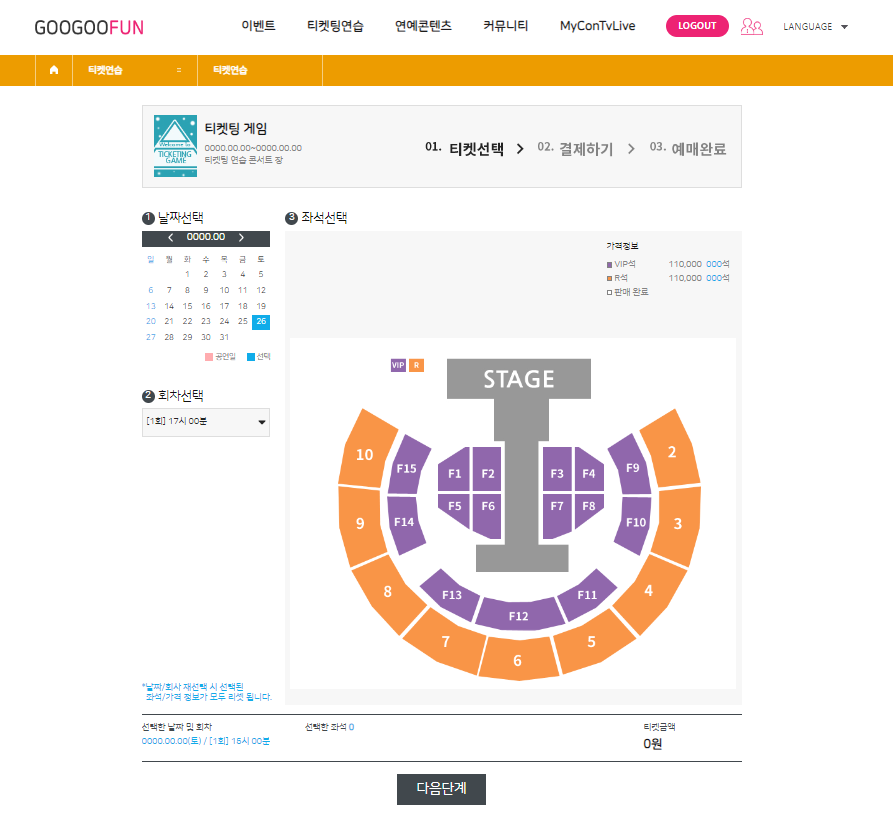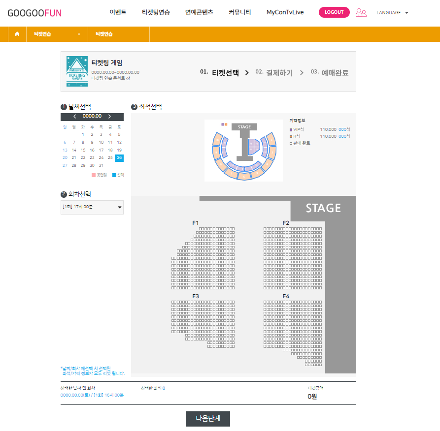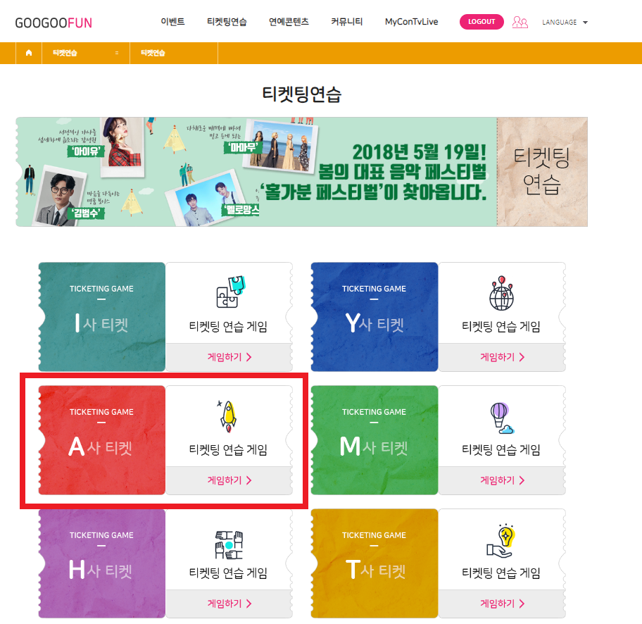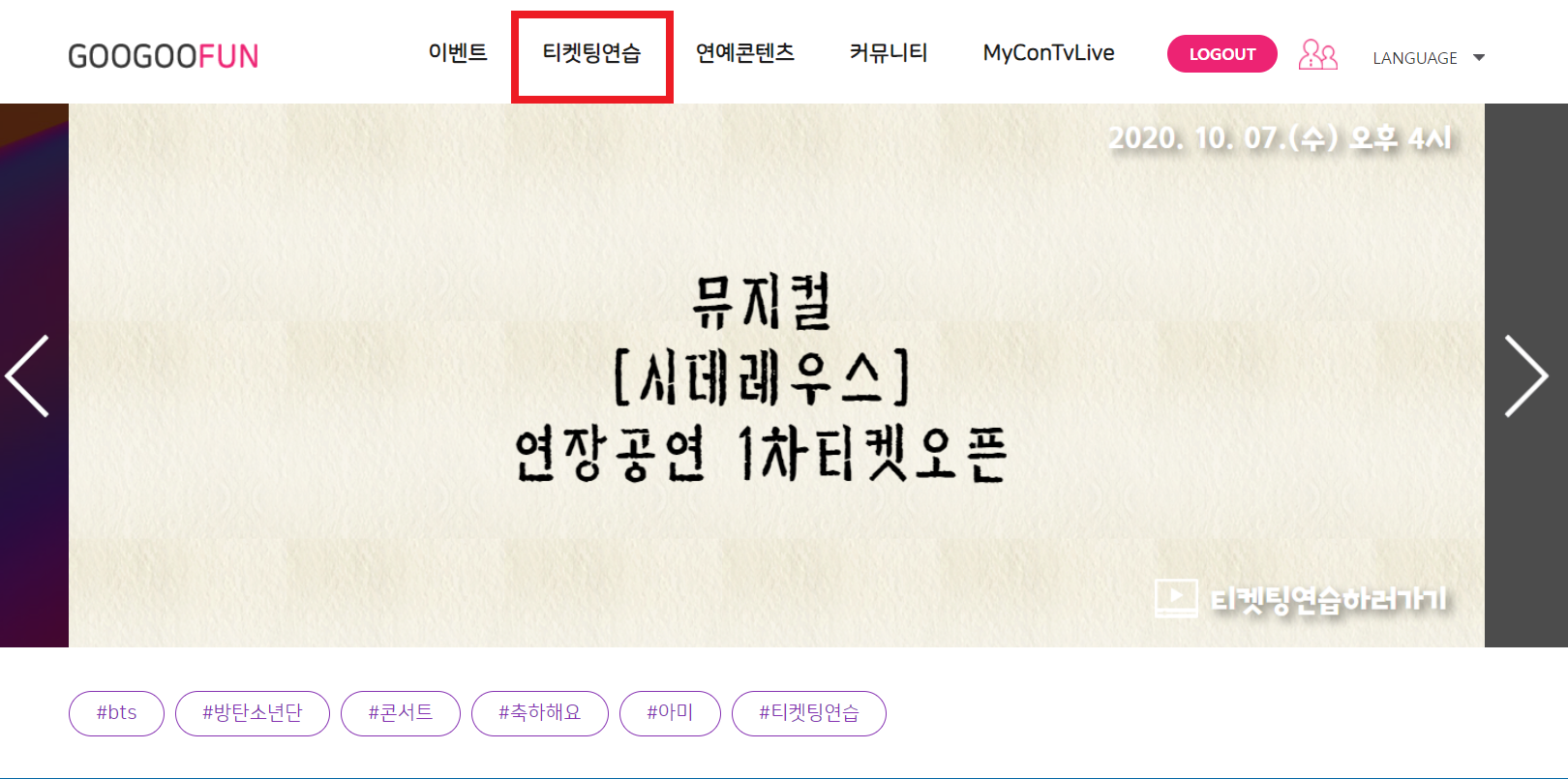 정해진 시간에 들어가서 예매하기를 누른 이후 어떤식으로 화면이 나오며 어떤걸 눌러야 실패 없는 티켓팅이 가능한지 일종의 시뮬레이션을 해볼 수 있는 구구펀을 활용해보자.